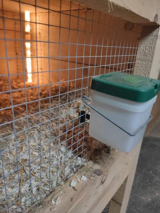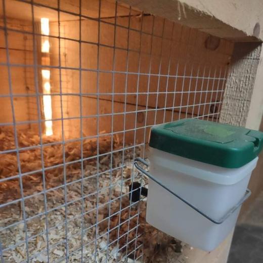 Niplová napáječka Gaun pro králíky a hlodavce s kolínkem a s nádobou 0,5 l - exkluzivní niplová napáječka pro králíky a hlodavce včetně drátěné úchytky na stěnu kotce. Napáječka se upíná drátem s háčky do ok pletiva (je součástí napáječky) do výšky niplu napáječky od podlahy kotce asi 15 až 20 cm.